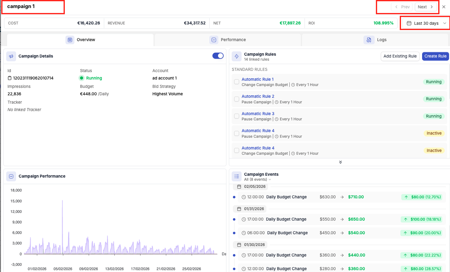 💡 Tip: Reviewing attached rules in the Details View is a fast way to audit what automation is in place for a specific campaign without navigating to the Rules section.